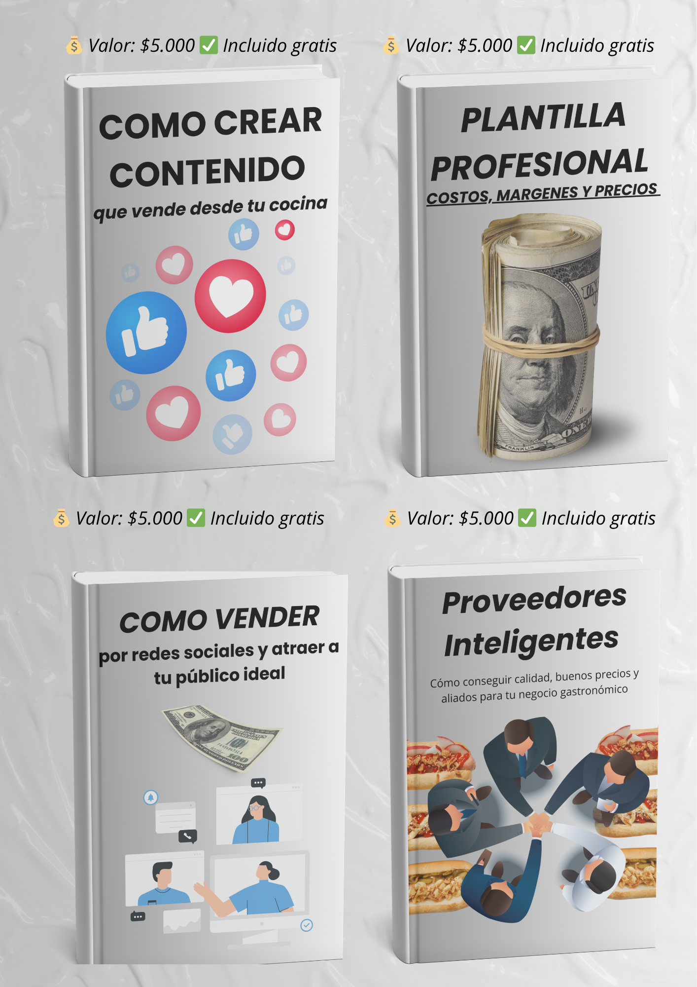 Incluye estrategias, ejemplos reales, calculadoras simples, plantillas y pasos concretos para crear tu negocio gastronómico desde cero.