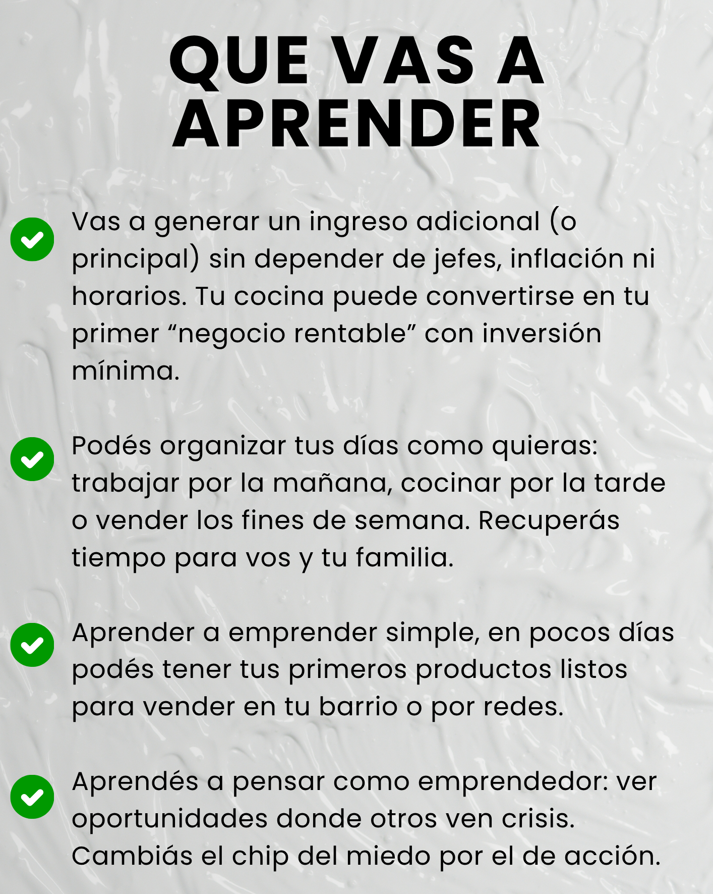 Incluye desde cómo armar el menú y calcular precios hasta cómo presentar el producto, crear tu marca y vender.